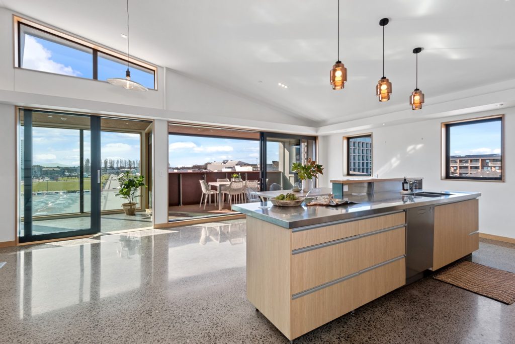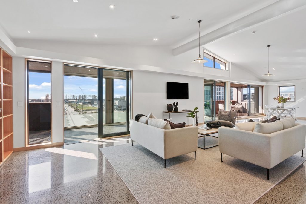 The vistas are exceptional, with green lawns and sculptural art offered from the north, while the Southern Alps beyond ensures your urban outlook is remarkably picturesque.