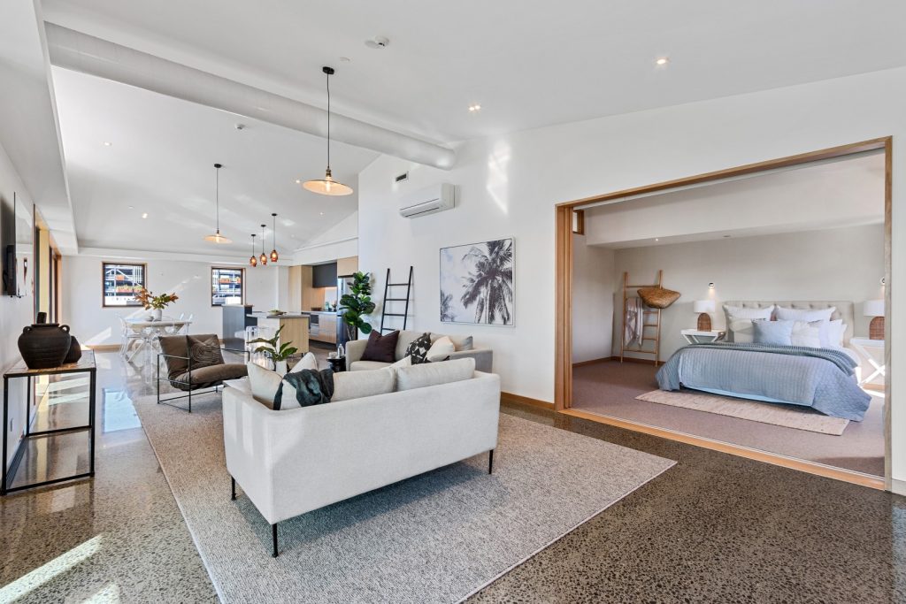 Personifying inner-city living and showcasing an exceedingly flexible floor plan, this penthouse can either be utilised as a four-bedroom property; or alternatively, it can be divided to offer two, two-bedroom apartments.