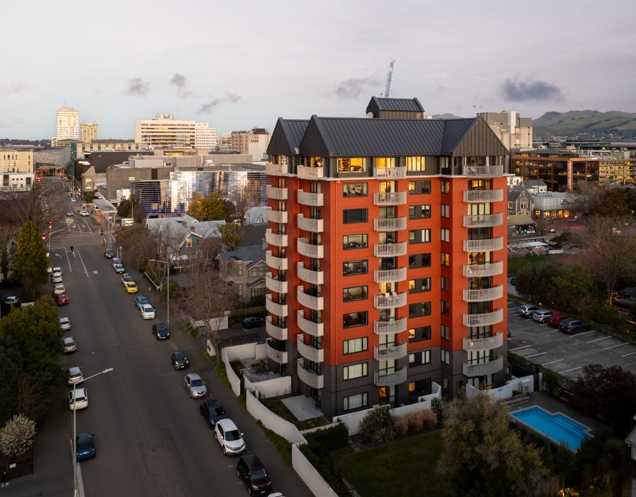 With its west-facing aspect, the open-plan living area draws focus to the city’s finest views, from Christ’s College and the Museum to Hagley Park, placing Christchurch’s heritage and garden-city scenery on full display.