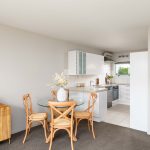 The modern kitchen naturally sits within the sun-filled living area, which opens onto a spacious, easy-care courtyard—tailor-made for alfresco meals or unwinding outdoors.