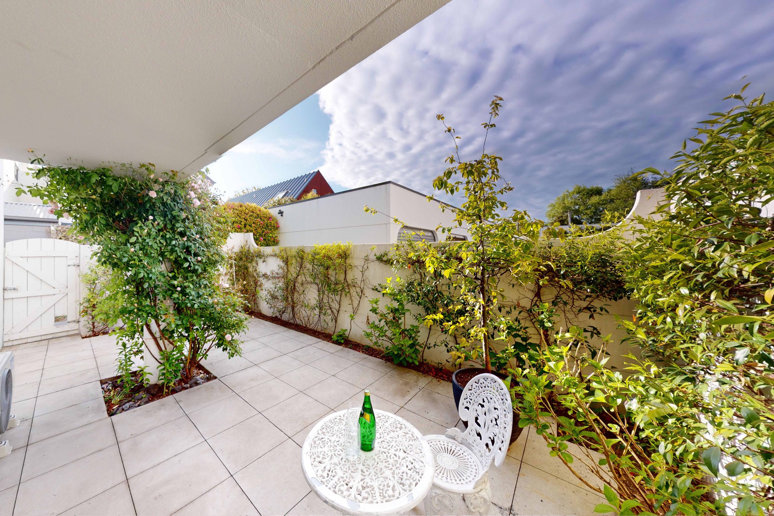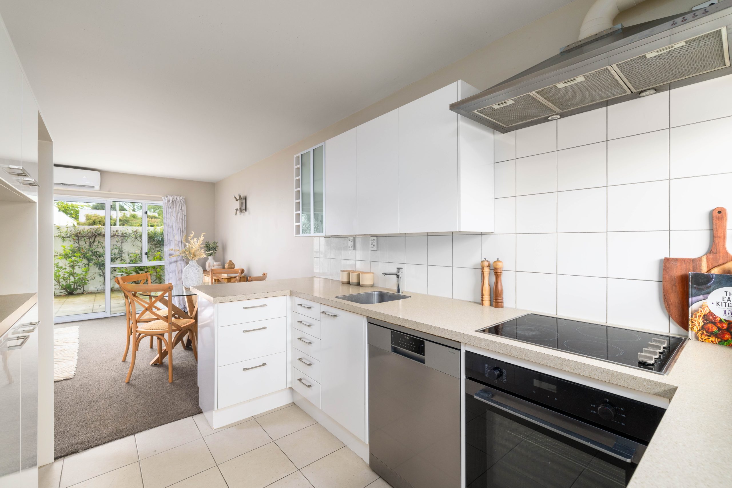 The modern kitchen naturally sits within the sun-filled living area, which opens onto a spacious, easy-care courtyard—tailor-made for alfresco meals or unwinding outdoors.