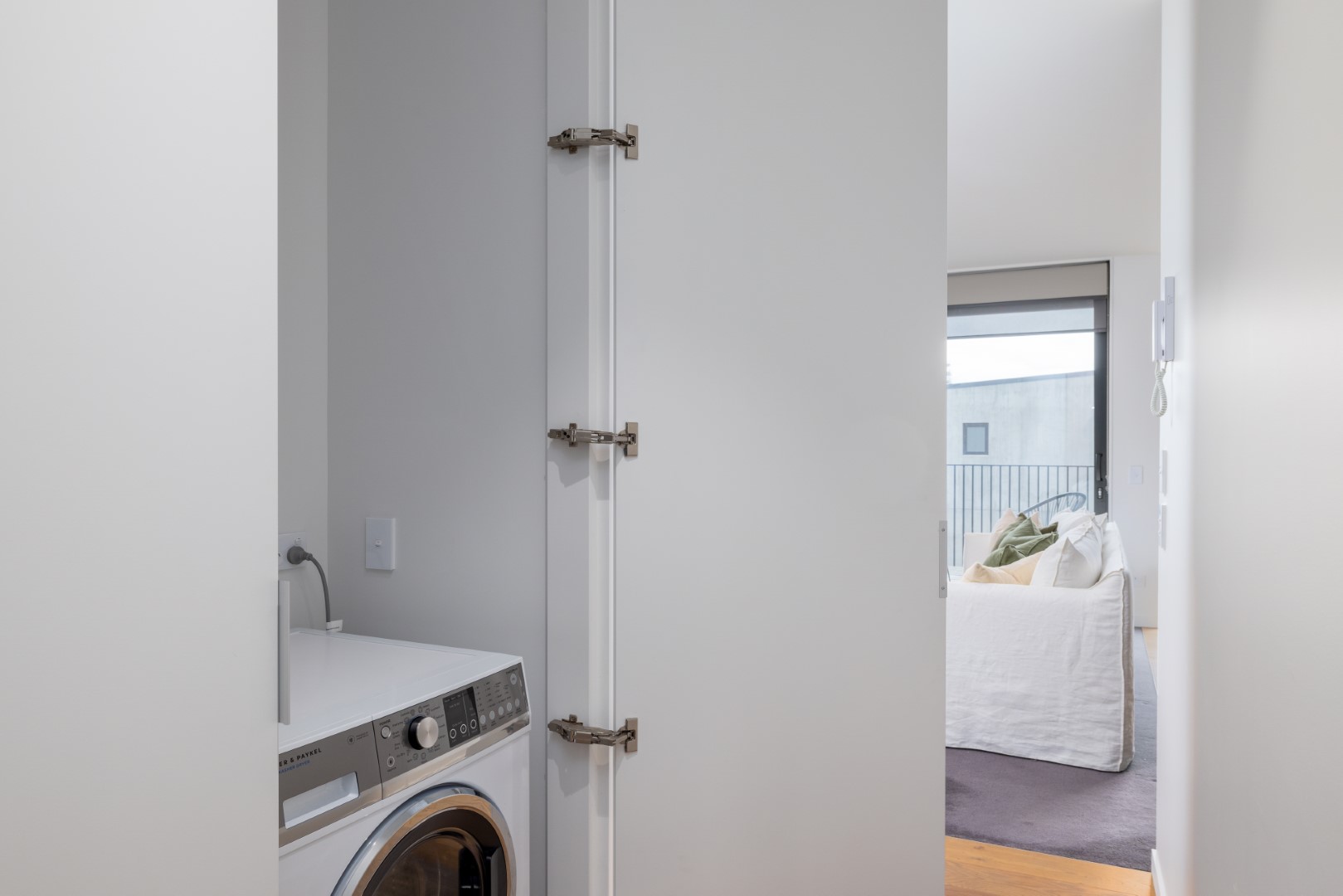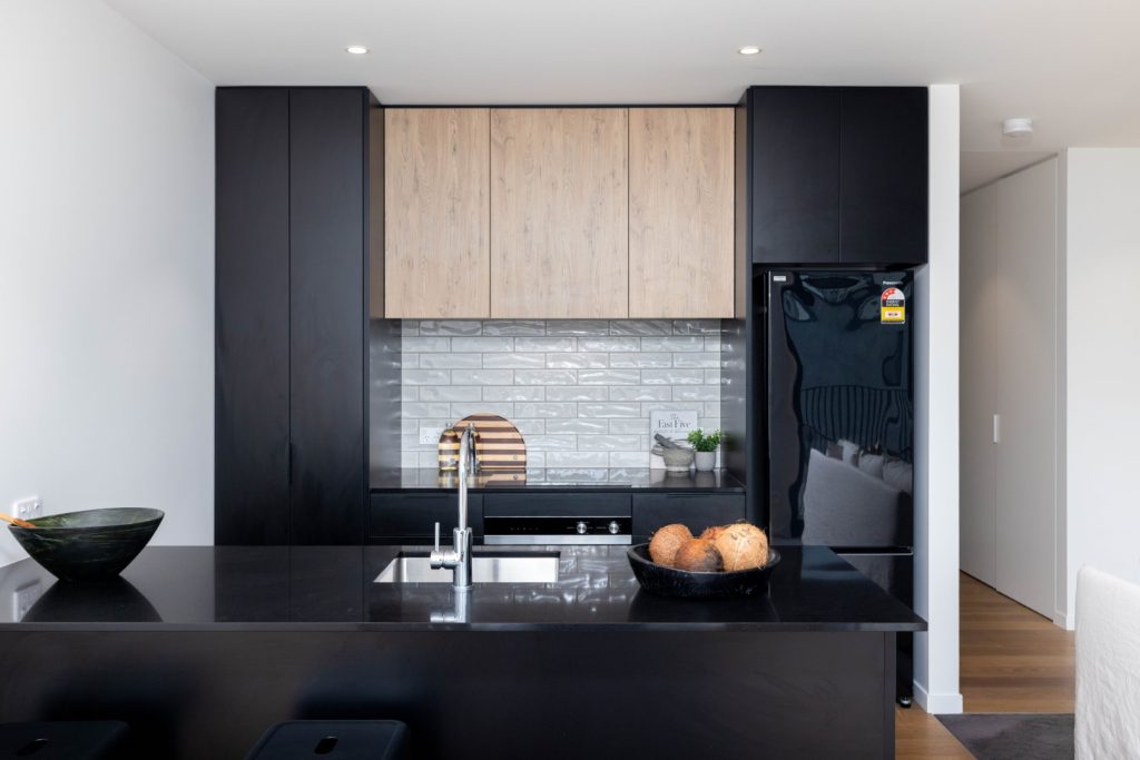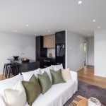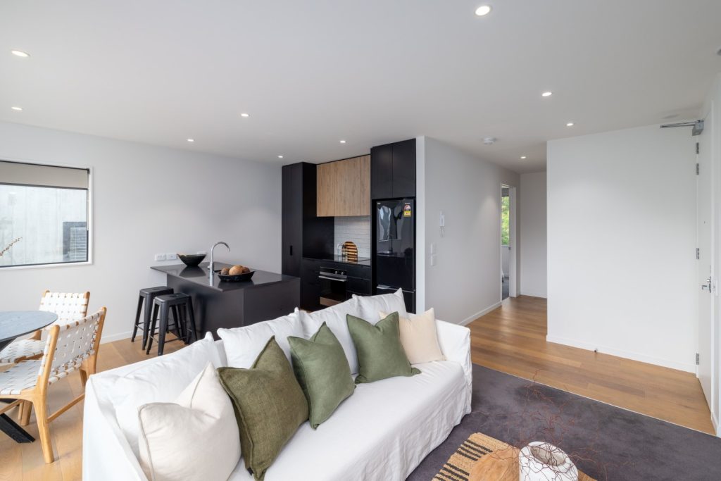 Designed by Sheppard and Rout and completed by Fletcher Living in 2021, this third-floor apartment delivers immense practicality within its single-level layout.