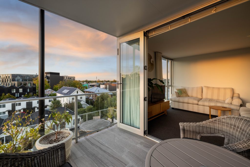 Maximising its north-west orientation and fourth-floor elevation, this apartment enriches everyday living with iconic scenery framed from every angle. Westward over Hagley Park, northward above the Victoria Precinct, and eastward over the historic ‘Peterborough’, with the master bedroom framing a charming view of the iconic Victoria Clock Tower.