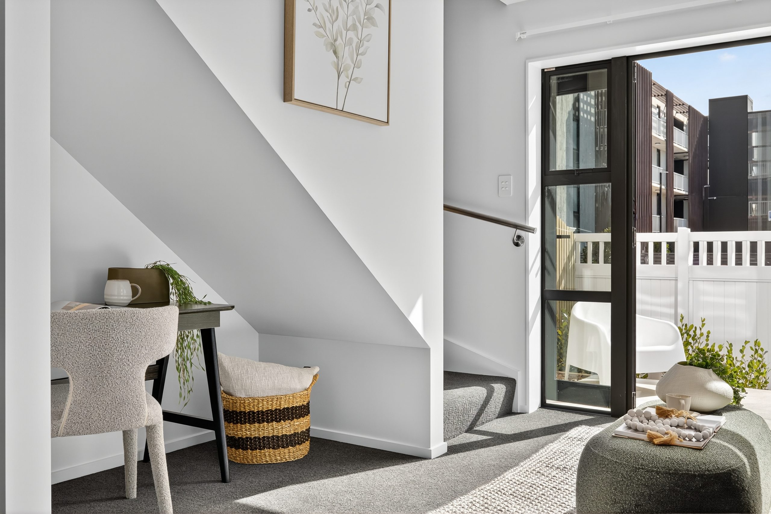 Enjoying the advantages of a north-facing design and end-unit position, this three-level townhouse is sunlit across the living, outdoor space and both bedrooms, with the added benefit of morning light from the east.