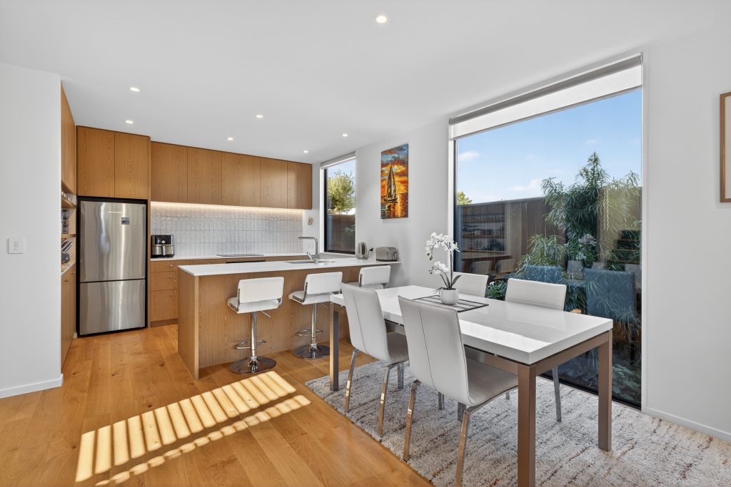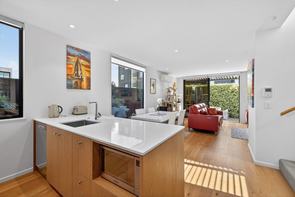 Completed in 2020 to a Sheppard and Rout design, this standalone townhouse on a freehold title is one of just three, with its premier rear position cementing its status as a genuine inner-city sanctuary. Securely accessed, the interior opens with high ceilings and a quality-leading specification that reflects the calibre of its architectural design. The ground floor is arranged for daily ease and entertainment, with an open-plan living area unfolding around a kitchen finished with Fisher & Paykel appliances, integrated water filtration, and extensive storage. A dedicated study nook is neatly incorporated, while a heat pump maintains year-round comfort. Sliding doors open to a private courtyard beneath a louvred roof, extending the living space into a sheltered outdoor setting that performs across the seasons. Symmetry, style and scale shape the top-level accommodation, where two expansive double bedrooms are appointed with plantation shutters, walk-through wardrobes and tiled en-suites with underfloor heating, including one with an Evo bidet. Behind the scenes, an off the kitchen separate laundry boasts extra storage cupboards along with a convenient extra pantry, supported further by under-stair storage and an outdoor shed for the everyday essentials. Gated entry, a security camera, intercom access and sensor-activated lighting reinforce privacy and peace of mind, while the front car park includes electric vehicle charging for modern convenience. With the Town Hall moments away and the new stadium an easy walk or scooter from the door, the location places Christchurch’s cultural, dining, shopping and entertainment precincts firmly at hand. Having been largely vacant, the home presents in exceptional condition and is offered with vacant possession by the Marlborough-based owners, with its level of specification, location and motivation expected to draw strong interest.