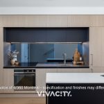The kitchen, a centrepiece of the living and dining area, boasts brushed steel benchtops, a stone counter, Fisher and Paykel appliances, and a high-end integrated Liebherr fridge to embody modern sophistication.
