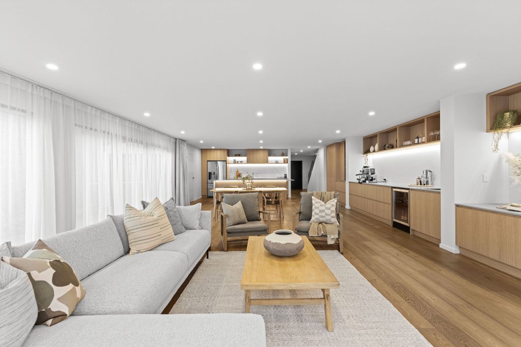Clean-lined and contemporary from end to end, the layout is driven by design and dimension, with four bedrooms offering flexibility for families, guests, or multigenerational living.