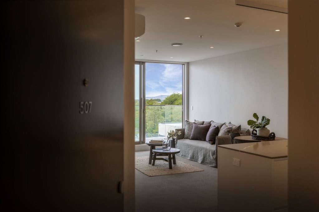 The open-plan living area is an elegant hub for entertaining and unfolds outdoors to the balcony, where you can enjoy sensational sunrises and urban views over the Town Hall. Your terrace vista is awe-inspiring, capturing everything from the Kaikoura’s to the north, right across the Port Hills down south.