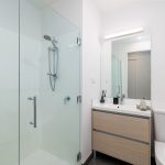 A heat pump delivers year-round comfort, with an integrated laundry nook opposite the modern bathroom, keeping things streamlined behind the scenes.